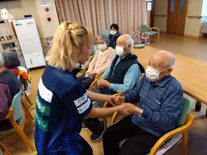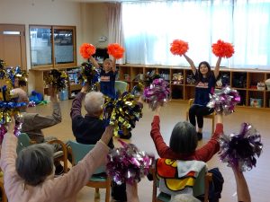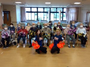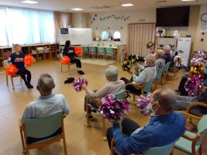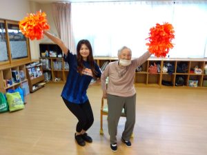 ご利用者様もボンボンを両手に握り、メンバーから教わった振り付けを音楽に合わせ一生懸命にダンスパフォーマンスしていました。普段より張り切って身体を動かす良い機会となりました。